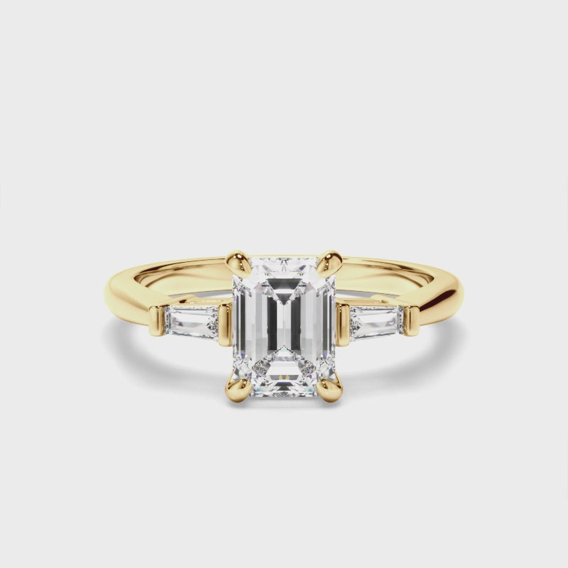 Emerald Cut Diamond Trilogy Engagement Ring with Baguette Sides
