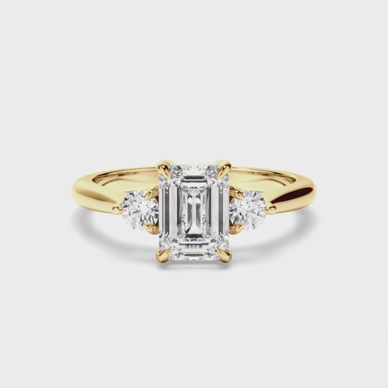Emerald Cut Diamond Trilogy Engagement Ring with Round Brilliant Sides