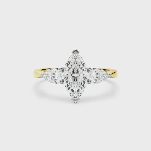 Marquise Cut Diamond Engagement Ring With Pear Cut Diamond Sides