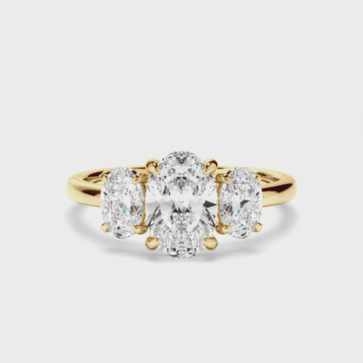 - Side Stones: 2 x 0.365 Oval Cut E+ VS+ Laboratory-Grown Diamonds = 0.73ct TDW