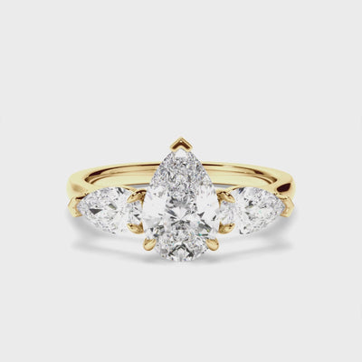 Pear Cut Diamond Trilogy Engagement Ring with Pear Sides