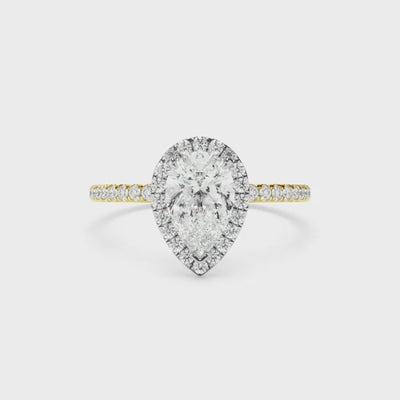 Pear Cut Diamond Halo Engagement Ring With Pave Band