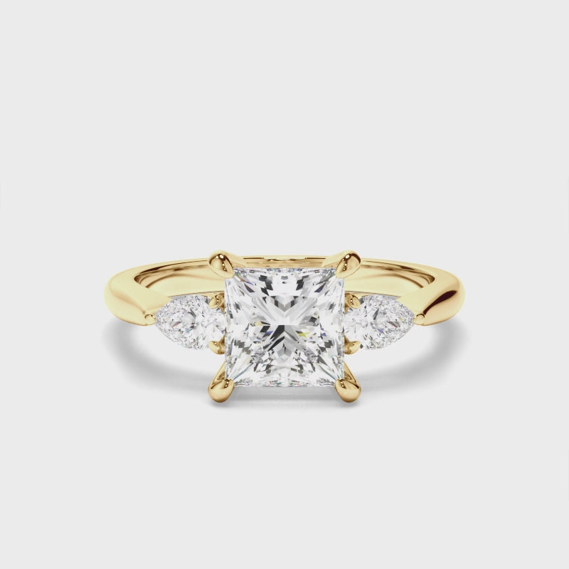 Princess Cut Diamond Trilogy Engagement Ring with Pear Sides