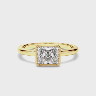 Radiant Cut Diamond Bezel East West Solitaire Engagement Ring
