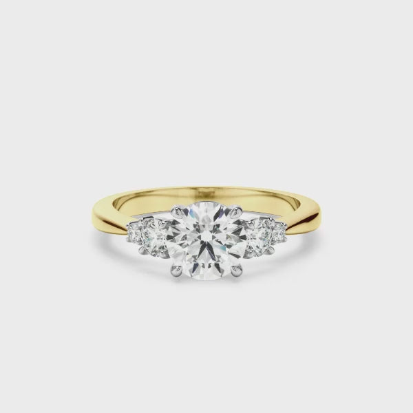 - Side stones: 2 x 0.24ct + 2 x 0.06ct Round Brilliant Cut E+ VS+ Laboratory-Grown Diamonds = 0.54ct TDW