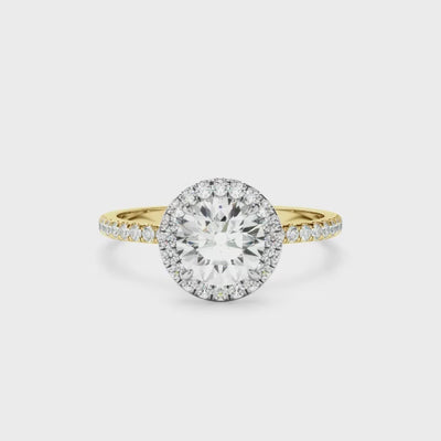 Round Brilliant Cut Diamond Halo Engagement Ring With Pave Band