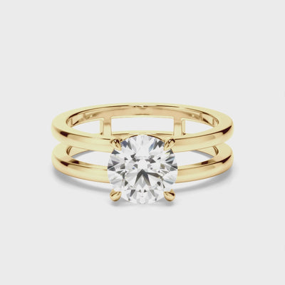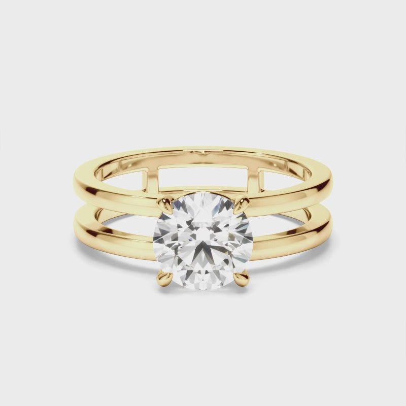 This timeless custom-made round brilliant cut diamond split band engagement ring can be made with your choice of diamond centre stone. Exuding fluidity in its line work, and boasting an elegant silhouette, as with all the pieces in our Bespoke Collection, this piece is made especially for you.